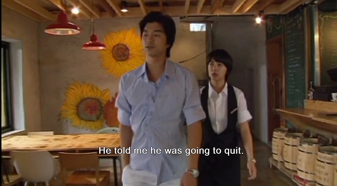 Junggugeo Kaenada: The retreat at the apple orchard helped, too. Han Gyul finally learned some humility when he screwed up and his employees did not hesitate to help him rectify the situation. Rather than an annoying departure from the story, the Coffee Prince retreat was entertaining, and really did serve to build rapport and character.