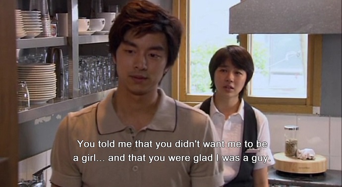 Han Gyul tells Eun Chan to leave the coffee house. She attempts to explain her rationale, but Han Gyul lambastes her for her selfishness. When Eun Chan protests, he forcibly kisses her, then disdainfully claims that he liked her better as a man.
