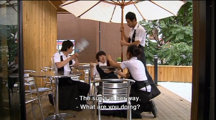 Han Gyul loses his temper after overhearing Ha Rim tell Eun Chan about blue balls, and watching the other employees order her around. The Coffee Princes decide to treat her like a princess to show that they know what male chivalry is.